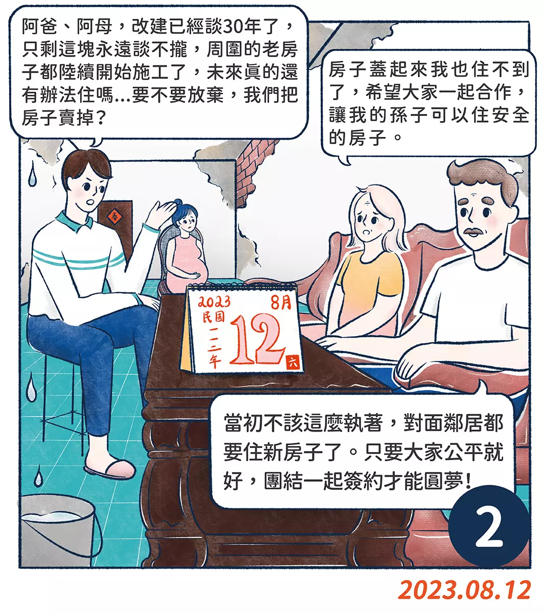 於地主簽約會上總是聽到這些真實經歷,即使前方略有挑戰仍然攜手往前邁進。說起台北市民對於房子的痛,十之八九都希望擁有嶄新、健康、安全的住所。看著眼前一位位長輩眼中的盼望、人生一路攜子攜孫等到如今終有契機,但願不將功虧一簣。