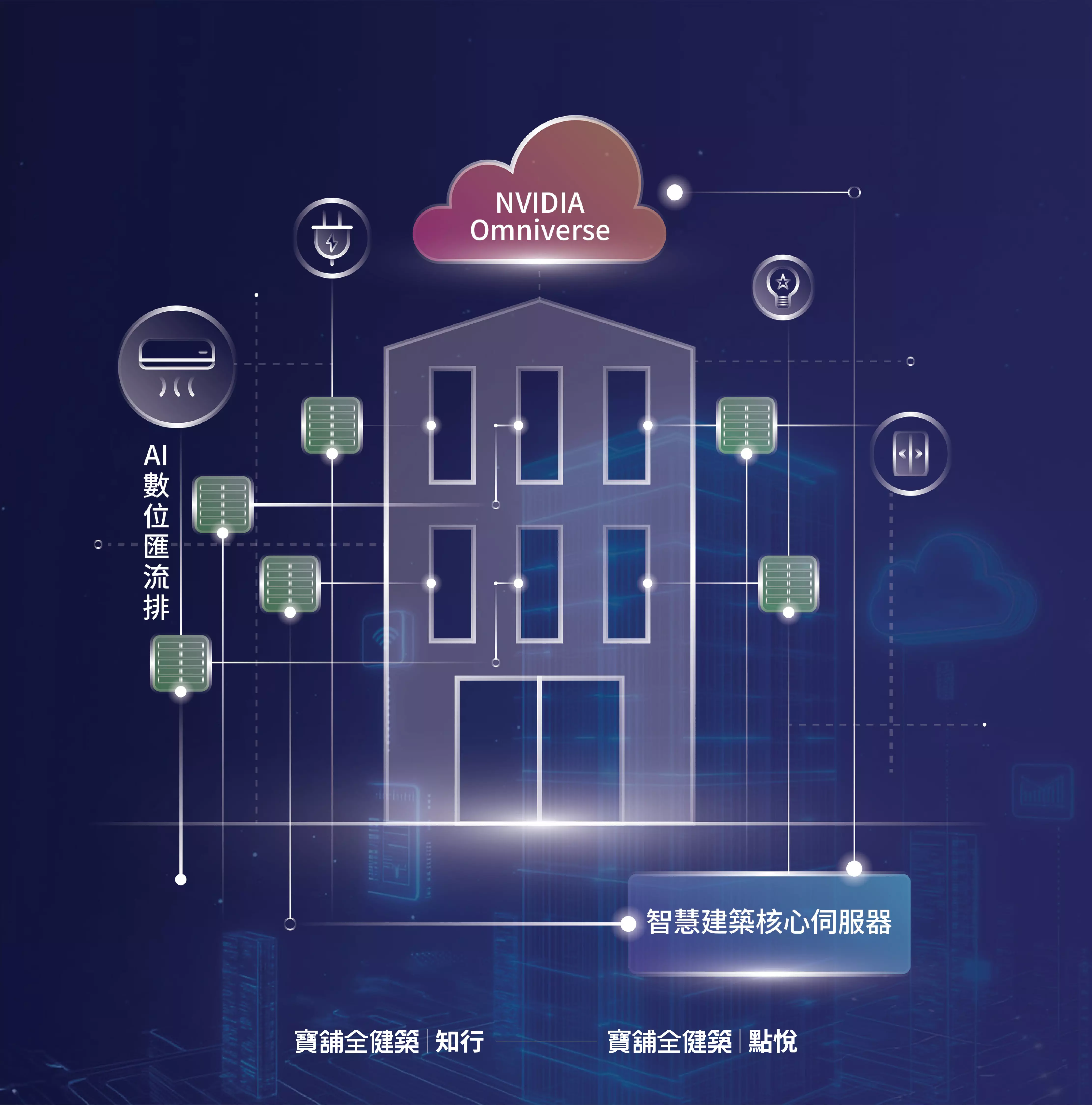 因此,本月首度正式發表以「全透明原生健康建築(簡稱全健築)」核心產品,將大幅推進跨系統整合、全面升級建物規格!即以智慧 AI 中樞為核心,運用 NVIDIA Omniverse 與 NVIDIA RTX L40S GPU,推動 BIM、 FM 全生命週期模擬與管理 與 AIoT 智慧資產管理,打造專屬「AI Digital Twin 可進化健築」!
